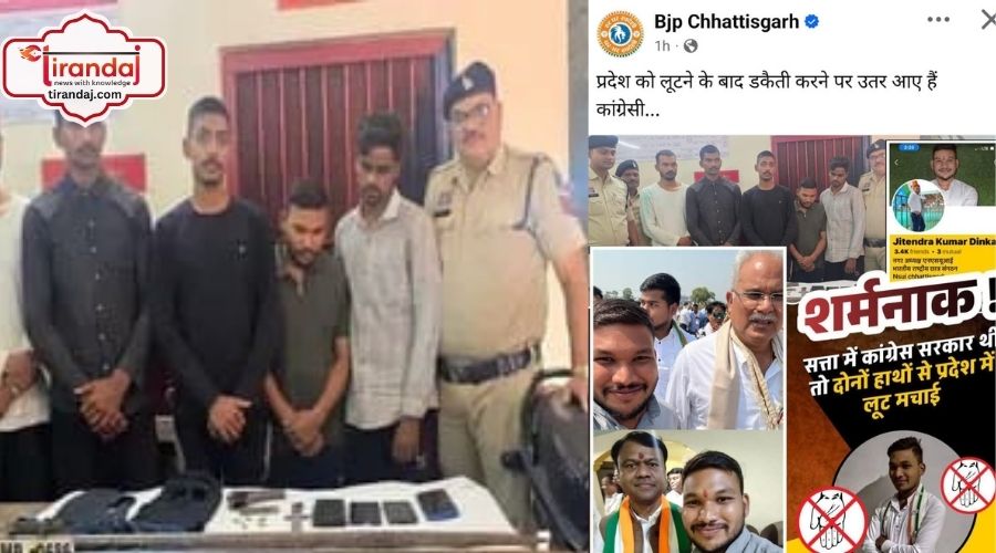 इस मामले में बीजेपी ने ट्वीट कर चोरी की घटना में एनएसयूआई के नेता के शामिल होने को लेकर शर्मनाक बताया है। जांजगीर के श्याम सुपर मार्केट में डकैती की साजिश को लेकर BJP महामंत्री नवीन मार्कण्डेय ने PC में कहा कि घटना में NSUI नगर अध्यक्ष जितेंद्र दिनकर शामिल है। बरामद हथियार क्षेत्रीय विधायक के घर से मिले हैं। प्रदेश की कई घटनाओं में कांग्रेसियों का हाथ है।