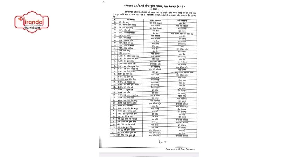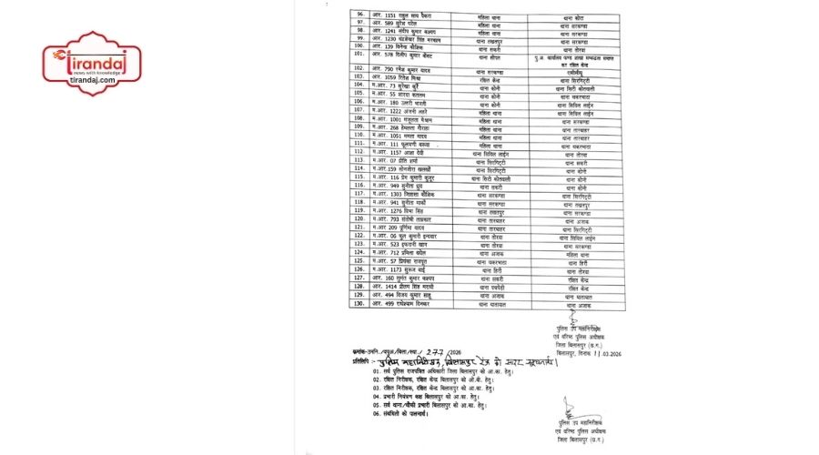 BILASPUR NEWS.जिले में कानून व्यवस्था को और मजबूत बनाने के लिए पुलिस प्रशासन ने बड़ा कदम उठाया है। एसएसपी रजनेश सिंह ने 130 पुलिसकर्मियों के एक साथ ट्रांसफर के आदेश जारी किए हैं। इस आदेश के बाद शहर और ग्रामीण क्षेत्रों के कई थानों में नई टीम तैनात की गई है।